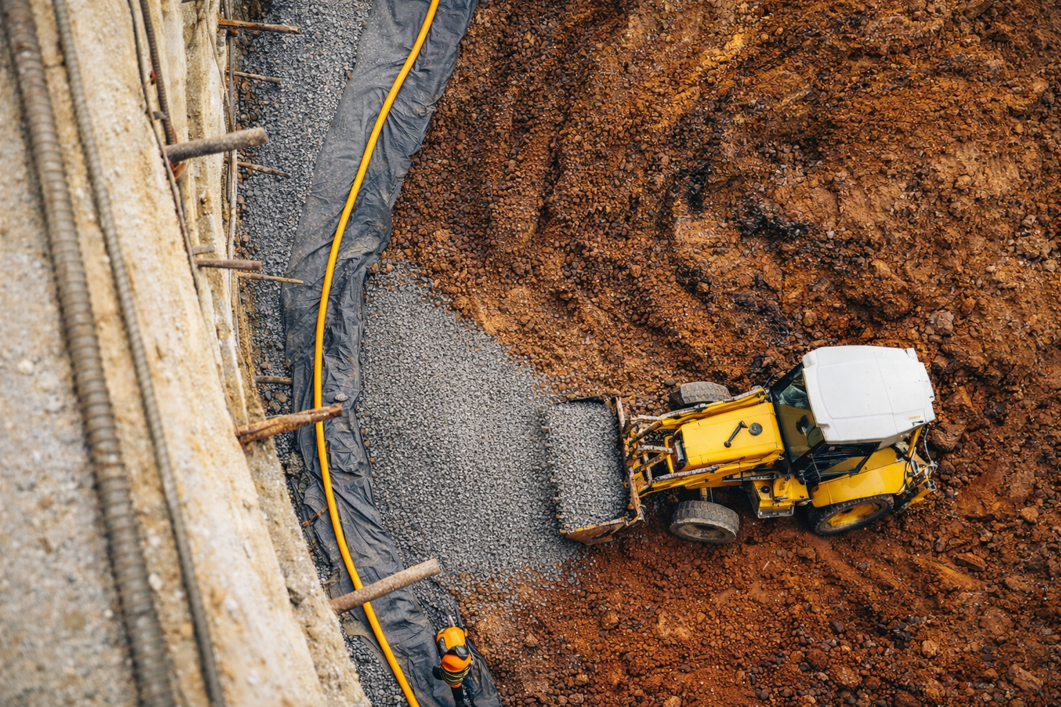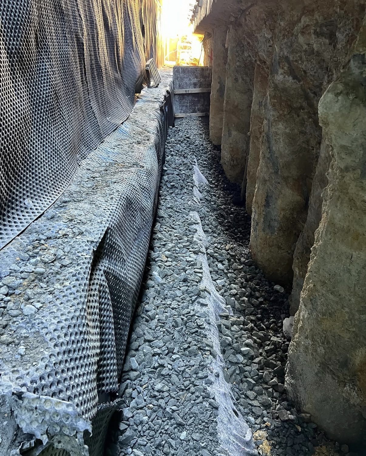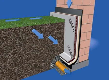 Temel çevresine eğimli şekilde boru yerleştirilir. (Perfore, Koruge, HDPE)
