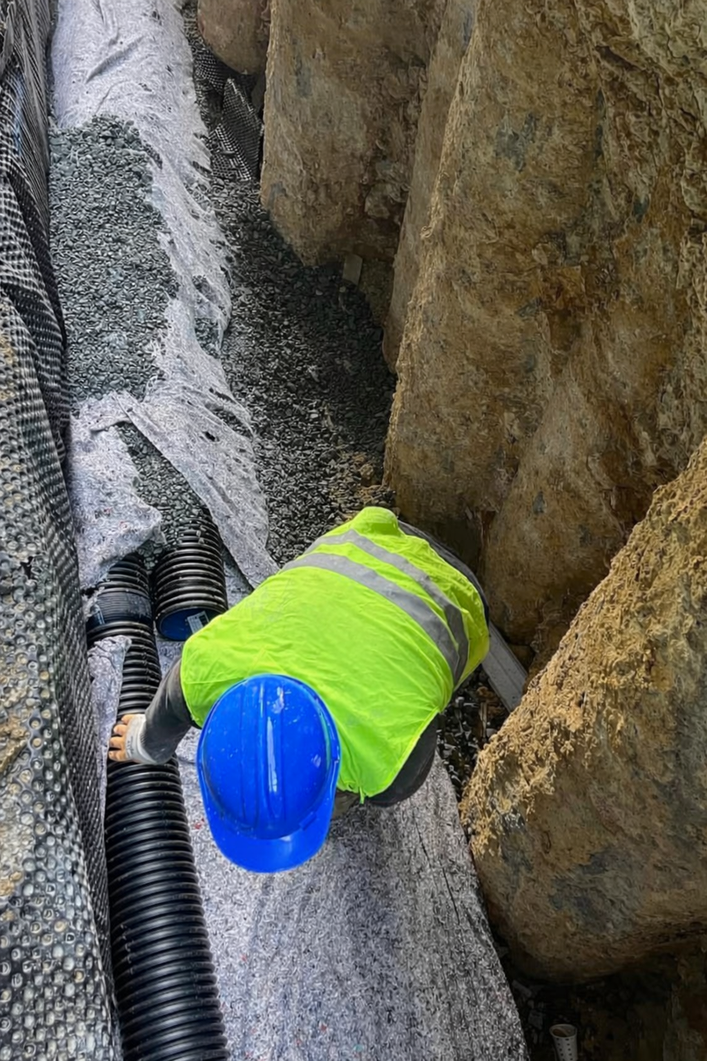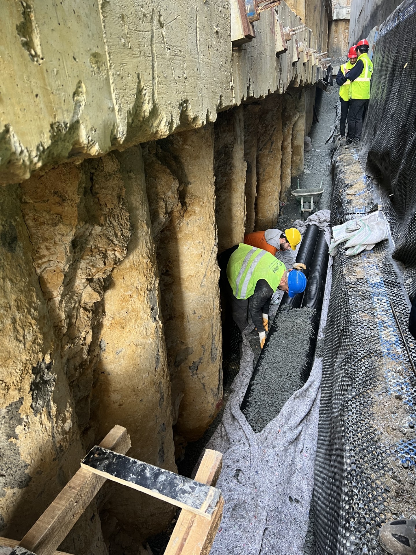 Hendek tabanına ve yanlarına filtre geotekstili serilir.